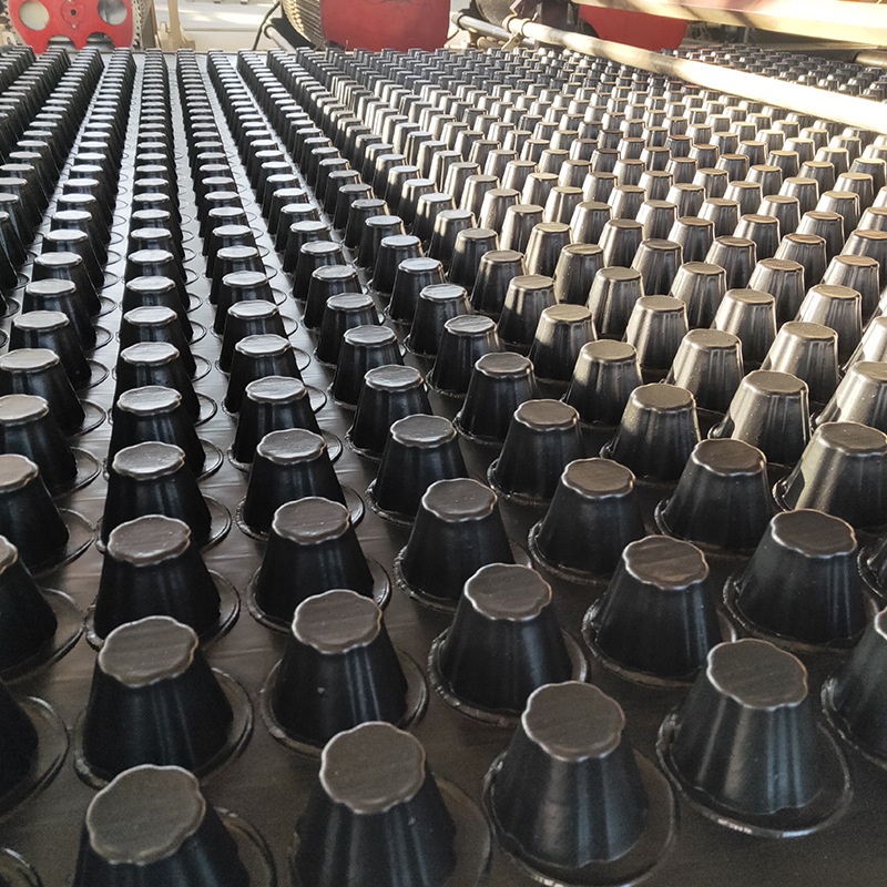 防排水保護板獨有的凹凸中空立筋結構,可以有效快速的導出地下防水層積水,地下滲出的水順著地下架空層排水板的空間將水引流至四周盲溝,再通過盲溝后引流至集水坑。從而大大的減少甚至消除了防水層的靜水壓,通過這種主動導水的原理達到主動防水的效果。有效的保護構筑物和防水層,并且抵抗土壤中的各種酸堿和植物的根刺還有防潮降噪的功能。對土建施工周期及構筑物的正常使用和壽命具有重要的作用。